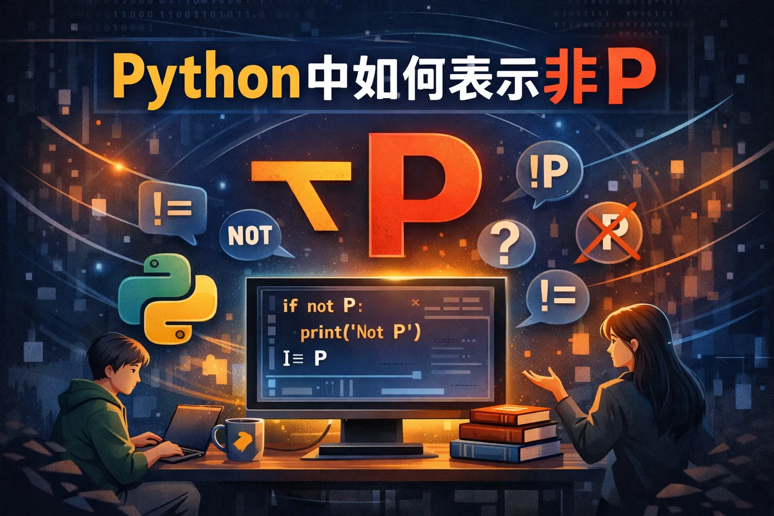 逻辑非操作在Python中主要通过not关键字实现。虽然可以通过比较操作符(如p == False)来实现类似效果,但这种写法语义不够明确,推荐直接使用not p来表示非p。