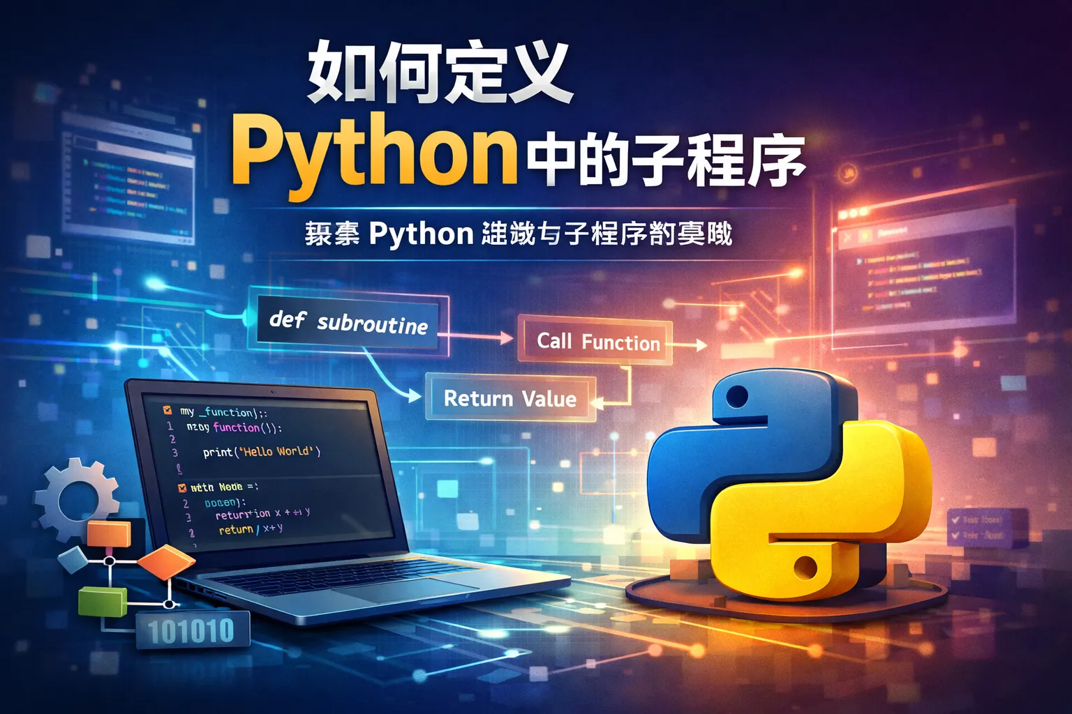 在Python中,函数是一段可重复使用的代码块,用来执行特定任务。它被定义后,可以被多次调用。子程序就是函数的另一种称呼,二者本质上是相同的。