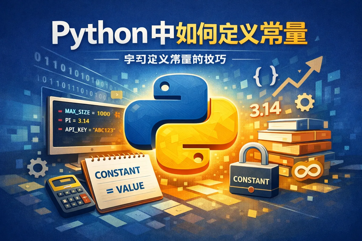 通常通过全大写的变量名命名约定来表示常量,例如MAX_SIZE = 100。也可以将常量放入单独的模块或类中,只要程序员遵守不修改的约定即可。另外,还可以使用第三方库或者利用命名空间和@property装饰器等技术来进一步保护常量不被修改。