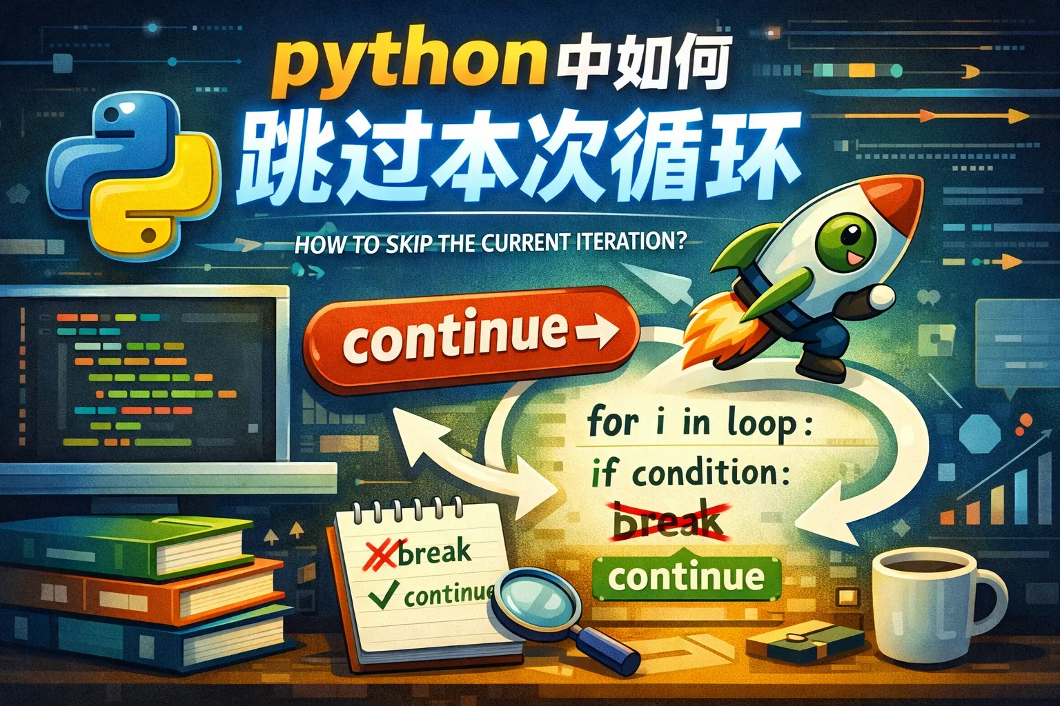 在Python循环中如何跳过当前迭代?