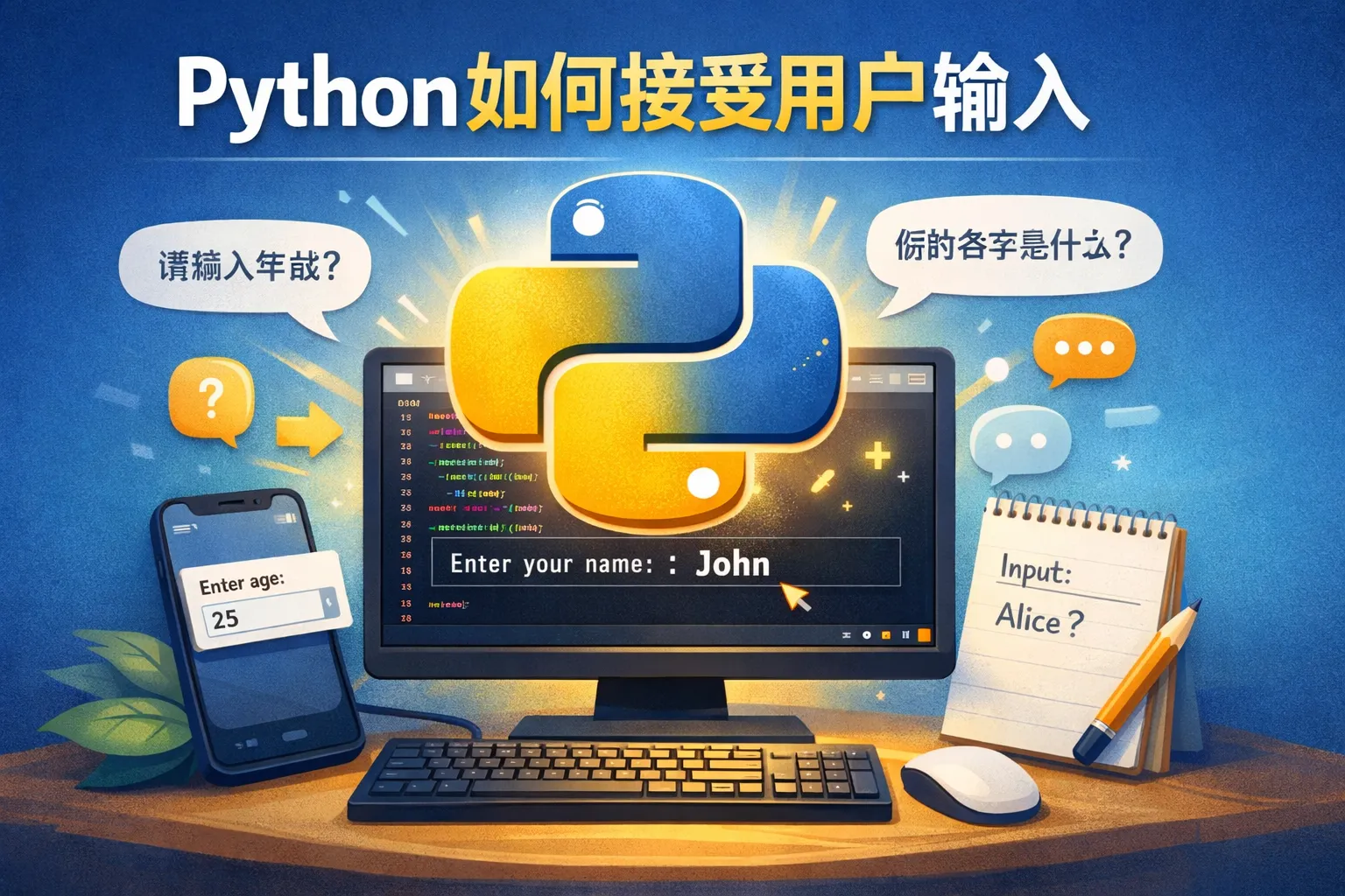 Python的input()函数可以接收一个字符串参数,作为输入提示显示给用户。比如,name = input('请输入你的名字: '),程序会在等待输入前显示提示,帮助用户明白需要输入什么内容。