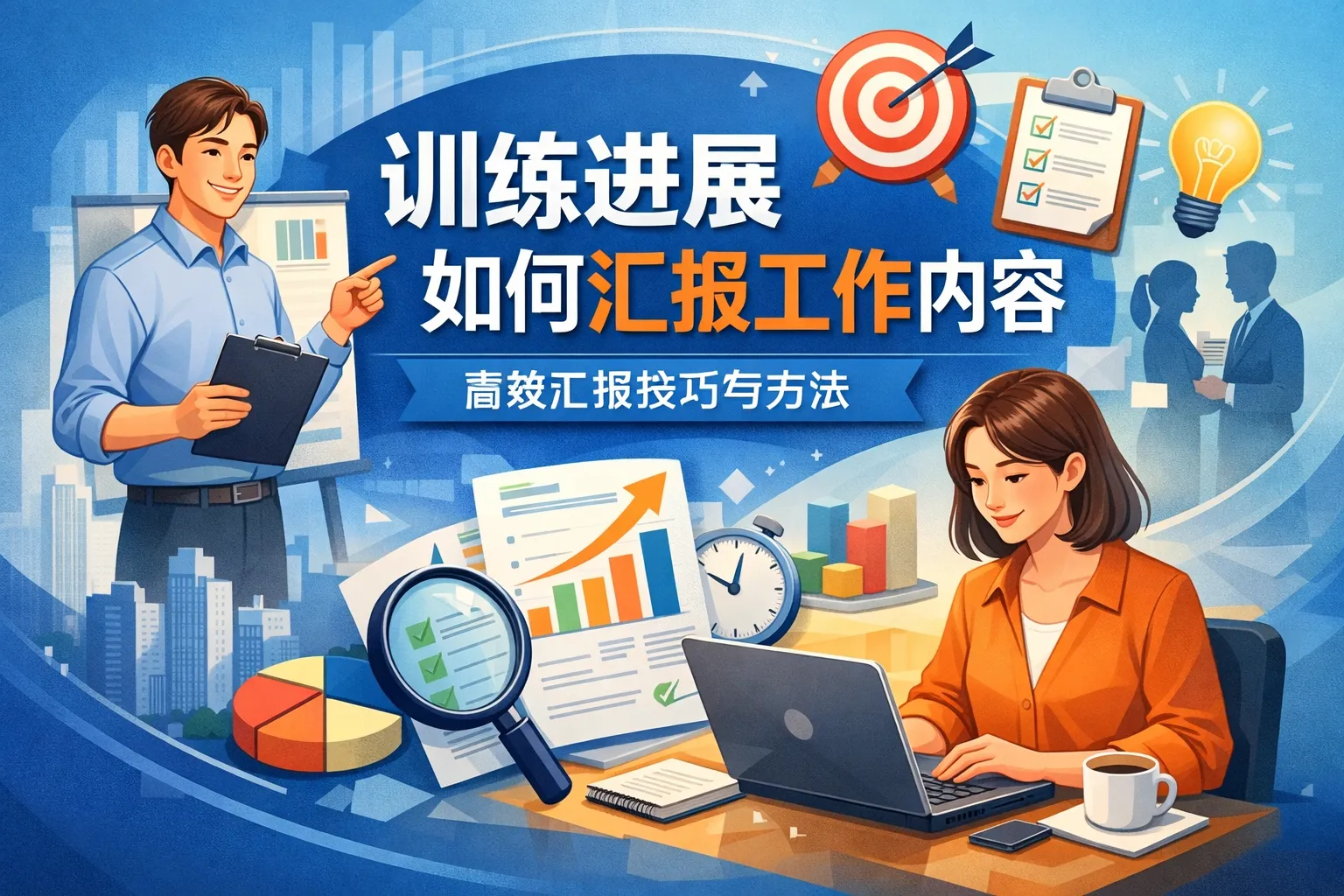 汇报训练进展时,哪些内容是必不可少的,以确保信息全面且有条理?