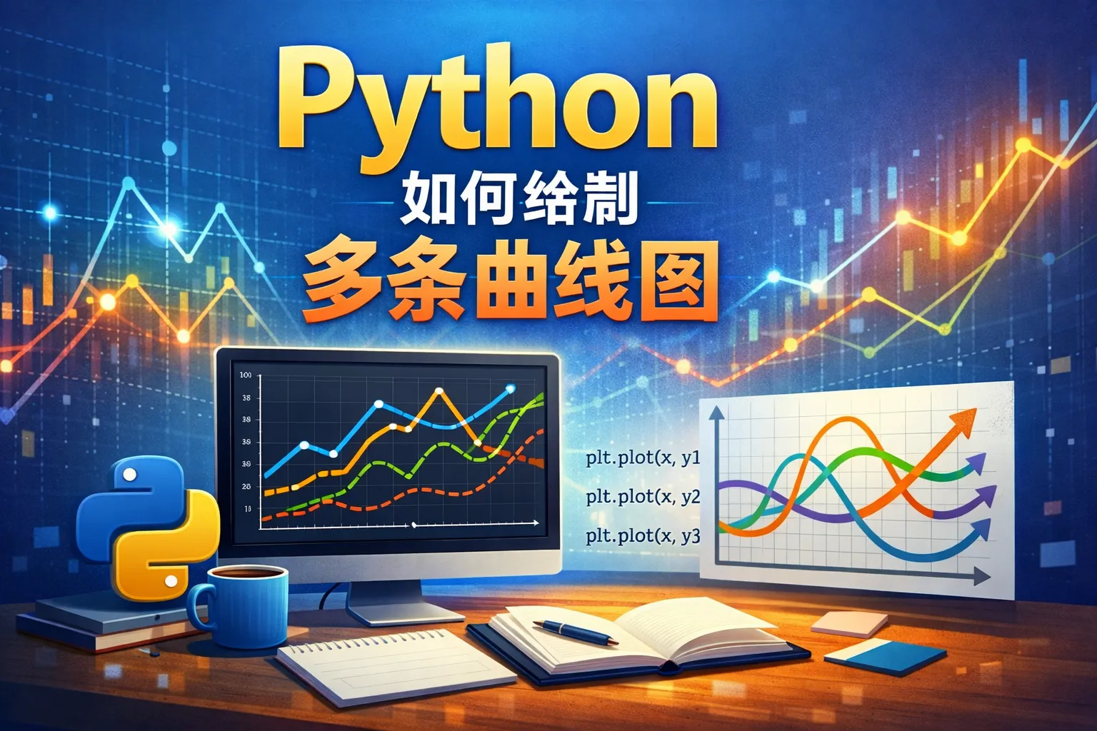 可以使用Matplotlib库,通过多次调用plot()函数在同一坐标系中绘制多条曲线。例如,导入matplotlib.pyplot后,依次调用plt.plot(x1, y1)、plt.plot(x2, y2)等方法,最后使用plt.show()显示图表。
