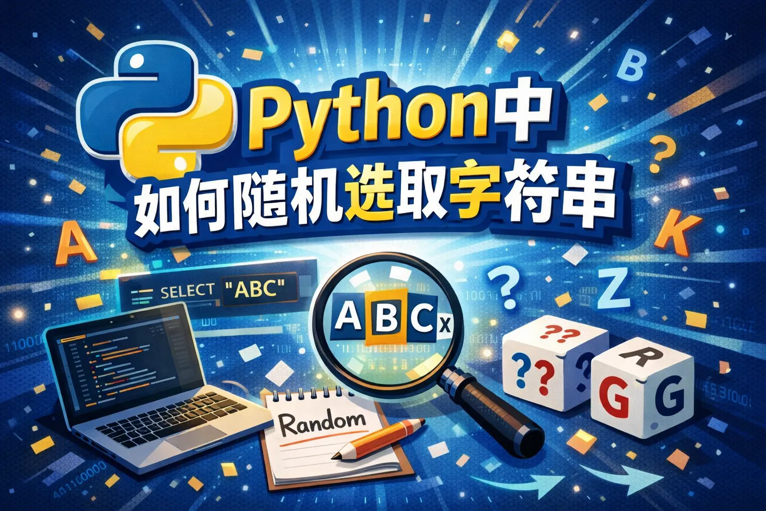 random.choices()可以用来从字符串中随机选择元素,并且允许重复。结合join方法,可以生成一个指定长度的随机字符串。例如: