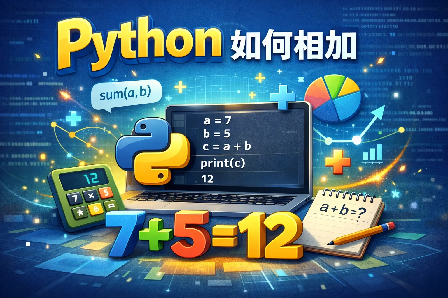 在Python中,可以直接使用加号(+)操作符来相加数字,例如:a + b。此外,也可以使用sum()函数对一个数字列表进行求和。例如:sum([1, 2, 3])会返回6。
