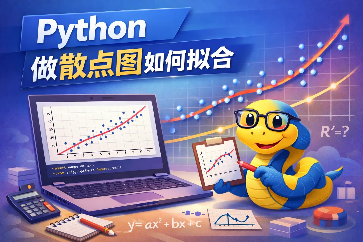 可以利用NumPy库的polyfit函数对散点数据进行多项式拟合,接着用matplotlib绘制拟合曲线。具体步骤是:先用polyfit计算拟合系数,再用poly1d创建拟合函数,最后将该函数绘制出来,叠加在散点图上。