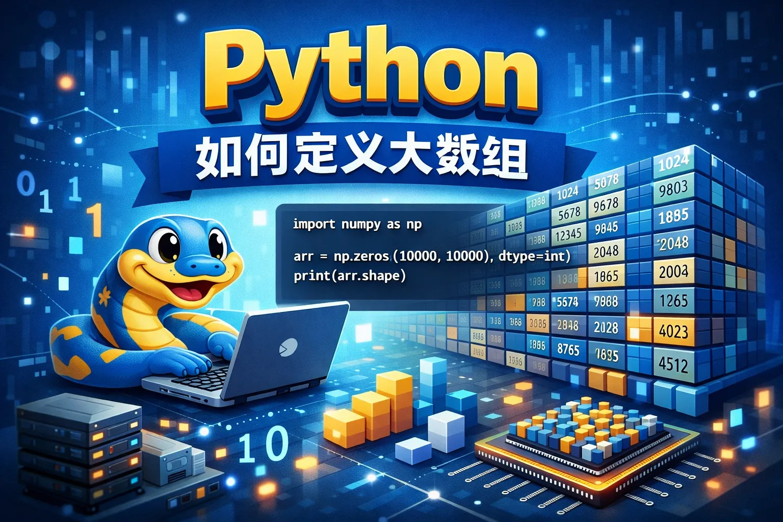 在Python中,可以使用NumPy库来创建和处理大数组,因为它提供了高性能的多维数组对象。此外,内置的list也可用,但对于大数据量的处理,NumPy的效率更高。使用NumPy数组不仅节省内存,还能加快计算速度。