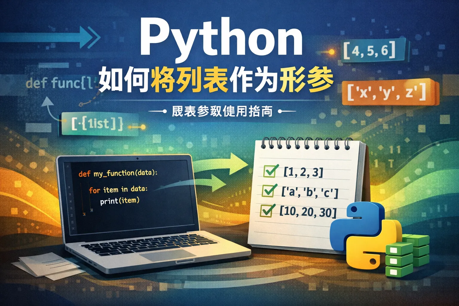 在Python中,可以直接在函数定义时为形参指定一个变量名,然后将列表作为实参传入。例如,定义函数时写成def func(my_list):,调用时传入列表func([1, 2, 3])。函数内可以直接使用该列表参数操作。
