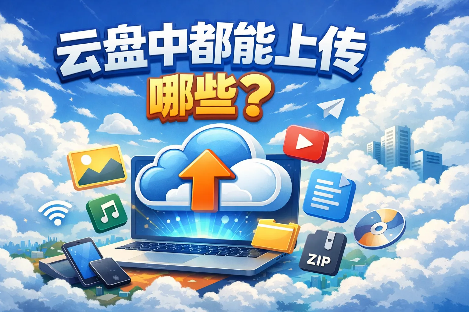 绝大多数云盘支持上传常见的文件类型,比如文档文件(如PDF、Word、Excel)、图片文件(如JPEG、PNG)、音频文件(如MP3、WAV)、视频文件(如MP4、AVI)以及压缩包(如ZIP、RAR)等。不过不同云盘平台可能会有些许差异,建议查看具体平台的上传文件支持说明。
