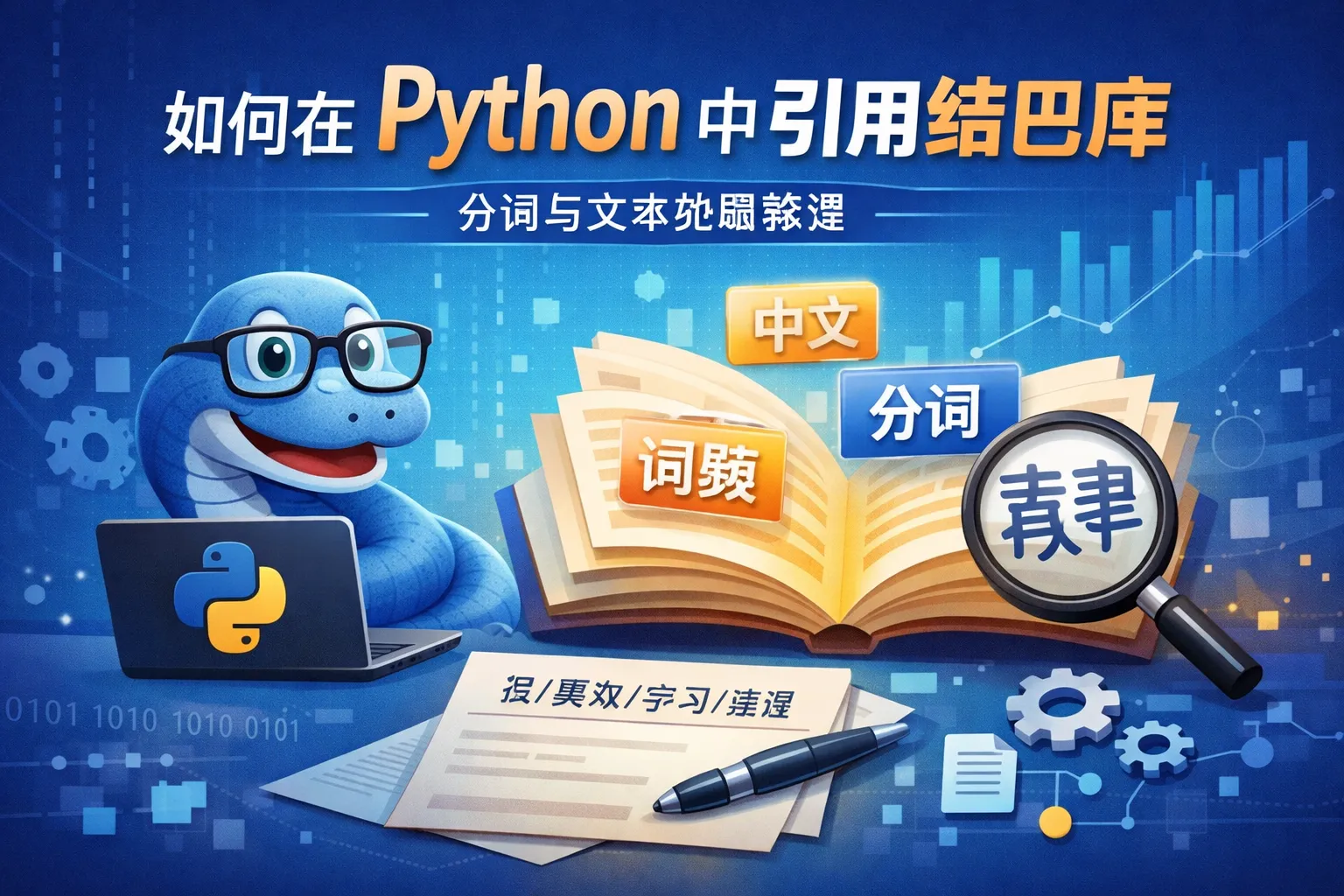 在你的Python脚本中,使用import语句导入结巴库:import jieba。之后就可以调用jieba提供的分词接口,比如jieba.cut()方法来进行中文分词操作。
