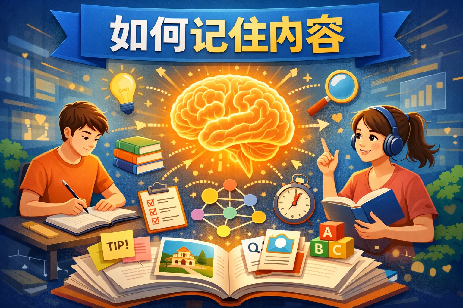 可以利用分类法将内容分成几个主题模块,每个模块用简短的关键词概括。借助联想记忆技巧,将信息与身边熟悉的事物联系起来,也能帮助记忆加深。分段反复练习与自测同样是提升记忆效果的有效方式。