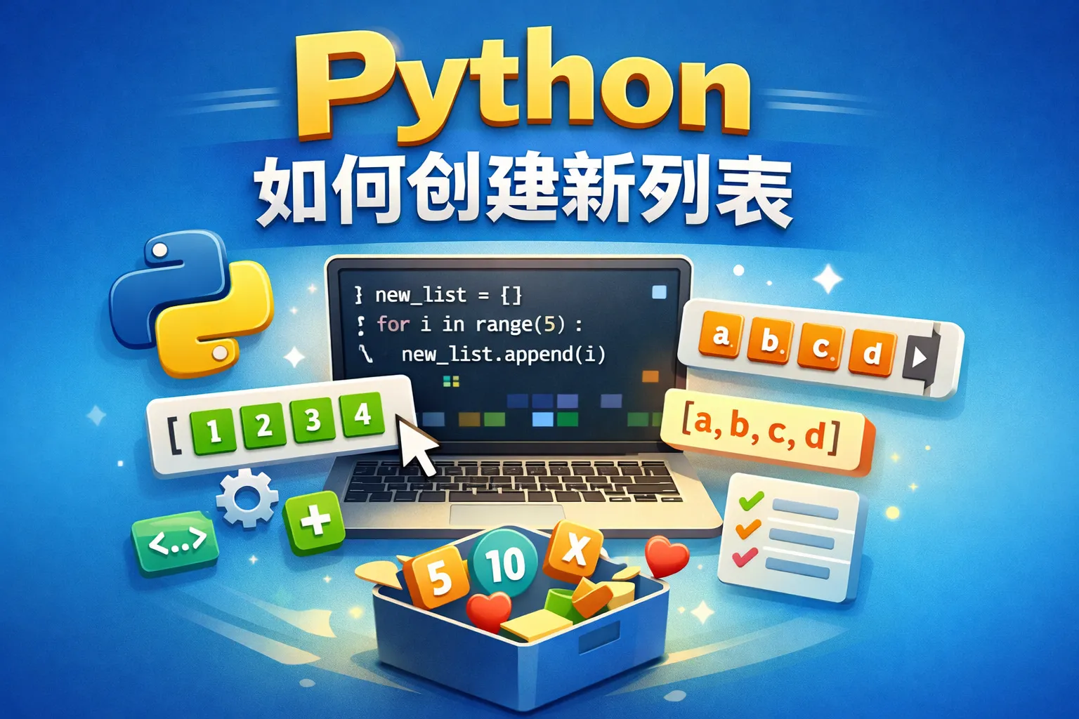 在Python中,可以通过多种方法创建新列表。例如,使用方括号写出元素列表:my_list = [1, 2, 3]。通过列表推导式创建新列表,更加简洁:my_list = [x for x in range(5)]。还可以利用list()函数将其他可迭代对象转换成列表,如list('abc')生成['a', 'b', 'c']。