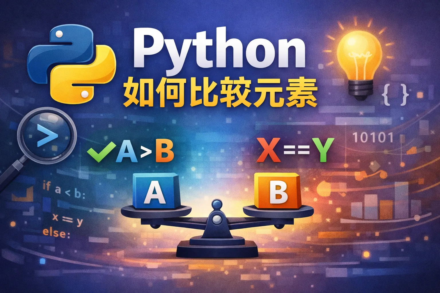 Python 提供多种比较操作符,包括 == 用于判断两个元素是否相等,!= 判断不相等,> 和 < 用于大小比较,>= 和 <= 用于包含边界的大小比较。此外,Python 还支持使用内置函数如 cmp(Python 2 中)和自定义比较逻辑来判断元素的先后顺序等。