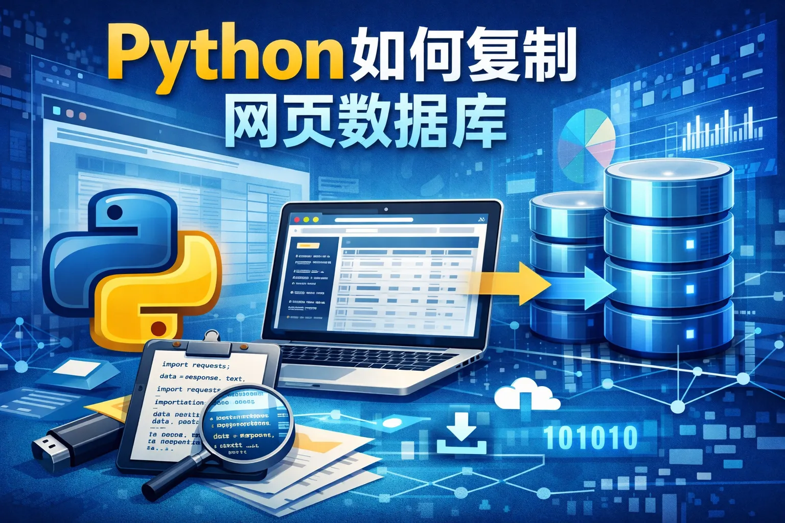 实现复制网页数据库的数据,可以先使用Python脚本连接目标数据库,提取所需数据,然后将数据插入到本地数据库或另一个数据库。可以用pandas库配合数据库连接库完成数据读取和写入操作。调用read_sql_query读取数据转成DataFrame,再利用to_sql保存到目标数据库。此流程支持数据同步和备份,方便管理和维护数据安全。