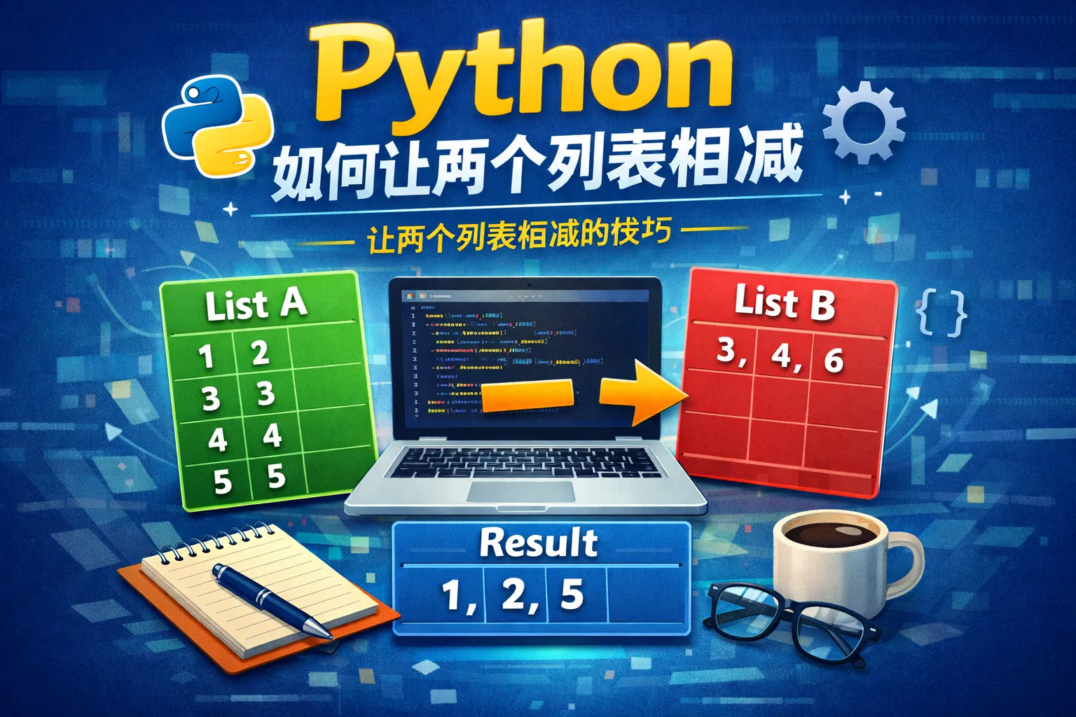 Python中的列表类型不支持直接使用减法运算符。要实现两个列表的差异,可以借助集合类型或者使用列表推导式来完成。如果尝试直接用 list1 - list2,会导致TypeError。