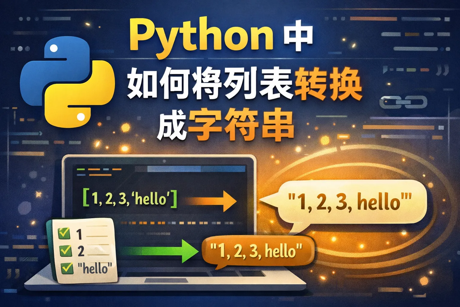 可以通过列表推导式或map函数,先把列表中所有元素转换成字符串类型,再使用join方法连接。示例: ''.join(str(x) for x in [1, 'b', 3]) 会得到 '1b3'。