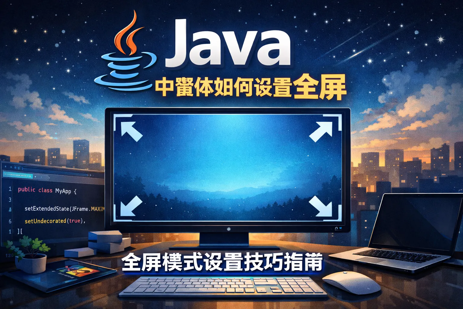 可以通过调用GraphicsDevice的setFullScreenWindow方法将窗体设置为全屏。此外,确保窗口无装饰(setUndecorated(true))可以避免标题栏和边框影响全屏效果。