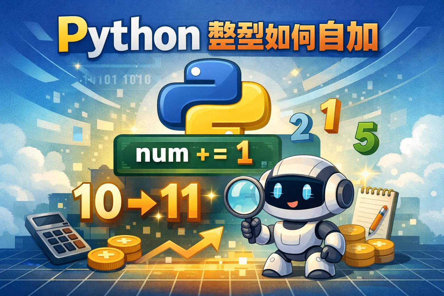 在Python里,整数是不可变类型,不能直接用类似 ++ 的操作符。通常用变量 = 变量 + 1 或者变量 += 1 的形式来实现自增,比如:num = num + 1 或者 num += 1。