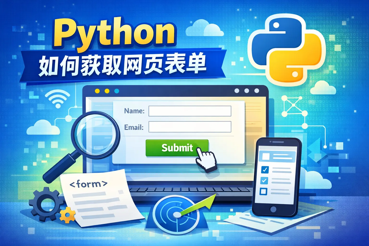 Python中常用的做法是使用requests库获取网页HTML内容,然后借助BeautifulSoup库分析HTML结构并提取表单元素。首先,用requests.get()获取页面源码,再用BeautifulSoup解析,找到