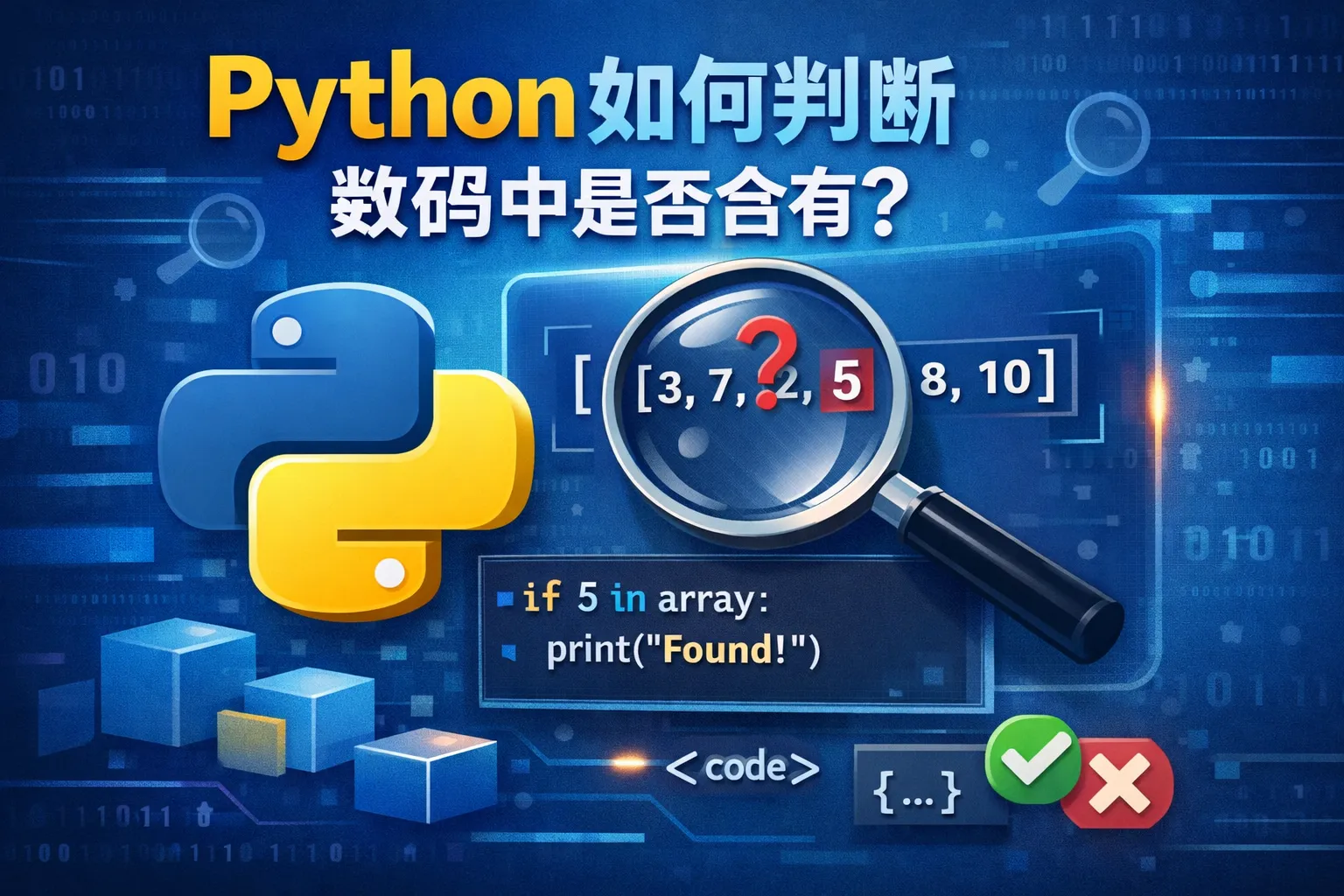在Python中,可以直接使用in关键字来判断数组(列表、元组等)中是否包含某个元素,例如 if element in array: 这样写可以快捷地判断元素是否存在。