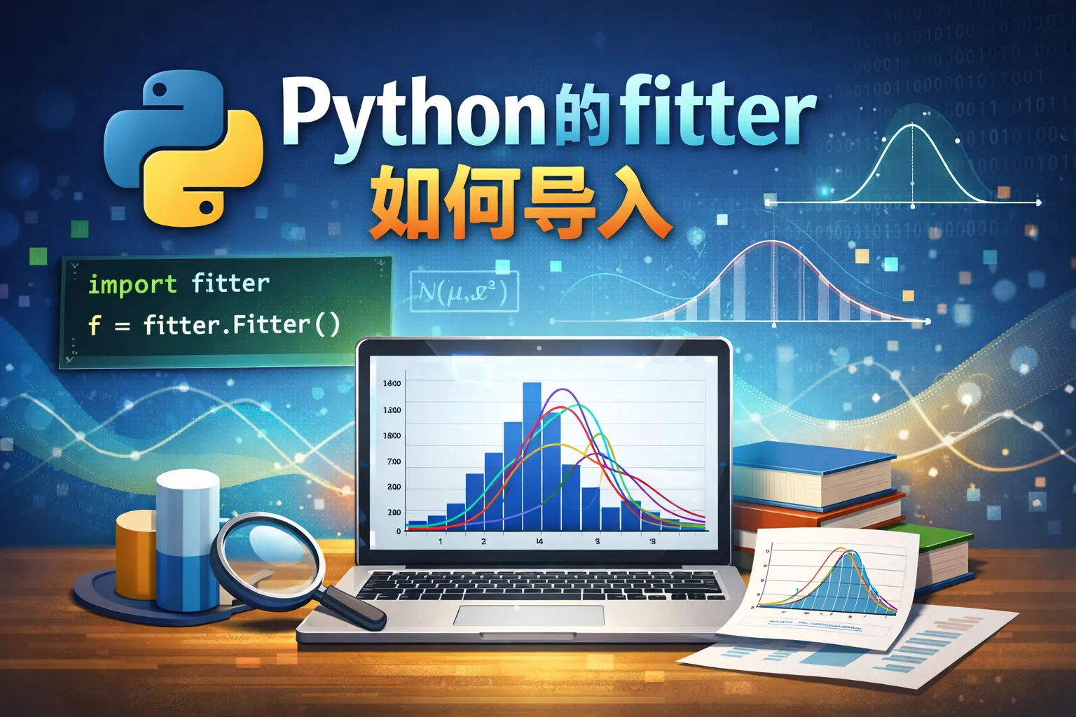 在Python脚本开头写入 import fitter 就可以导入这个库。若想使用特定的类,可以写 from fitter import Fitter。