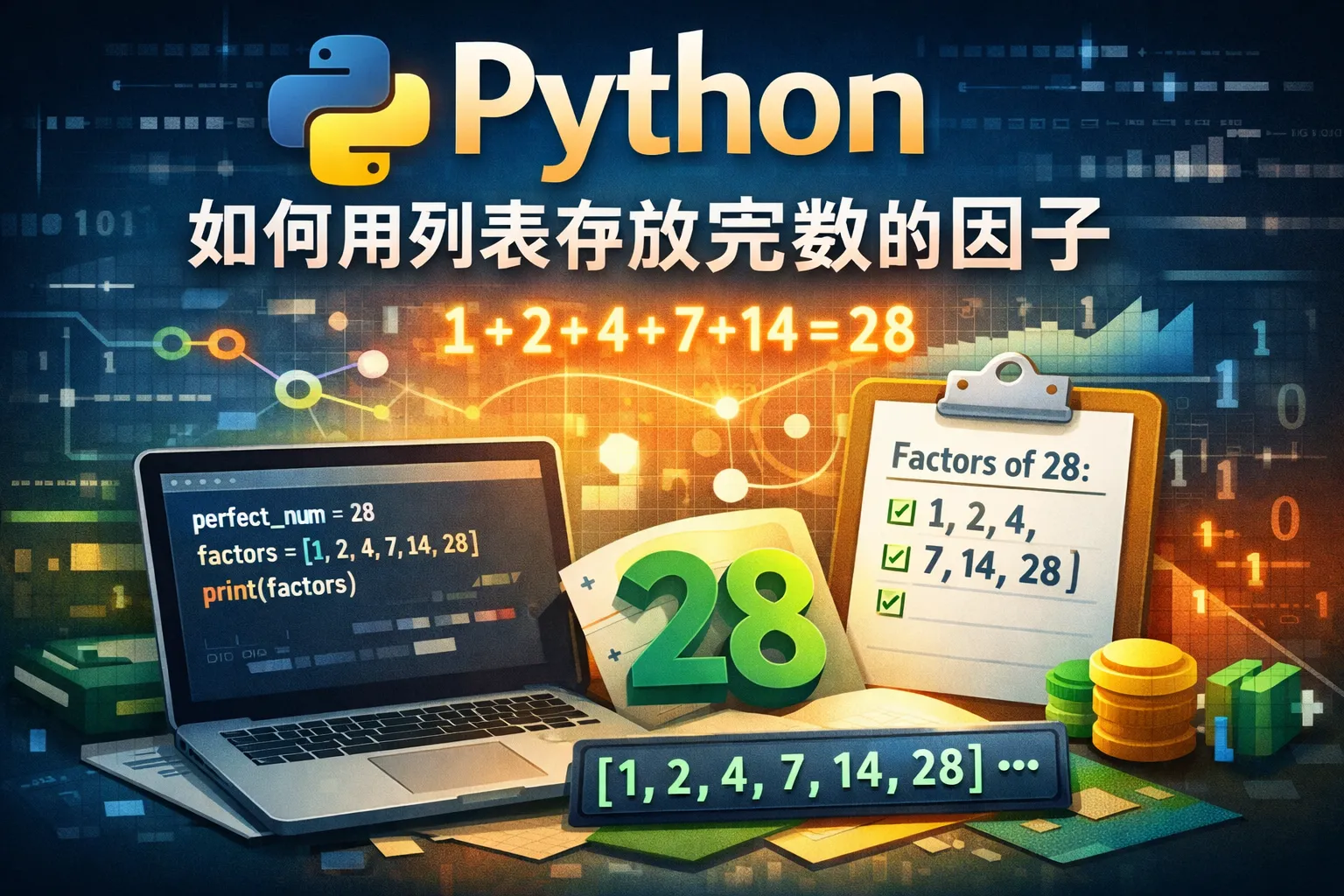 我想写一个Python程序,把完数的因子存入列表,如何同时判断它是不是完数?