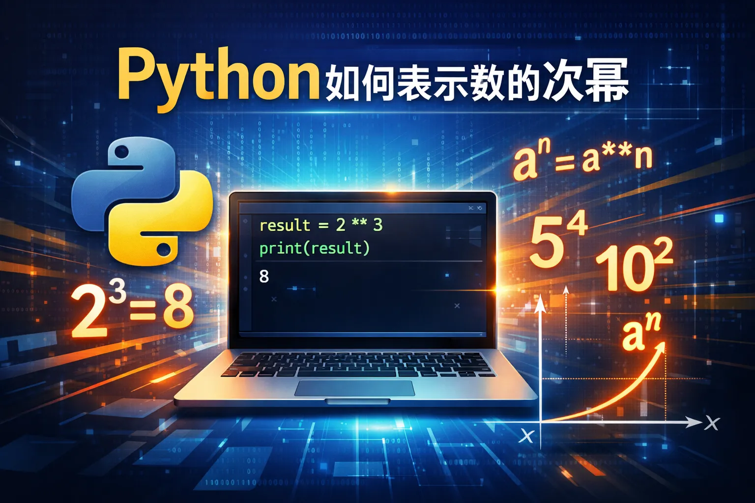 在Python中,可以使用幂运算符 '' 来表示一个数的次幂,比如 2 3 代表2的3次方。另外,也可以使用内置函数 pow(2, 3) 来计算同样的结果。