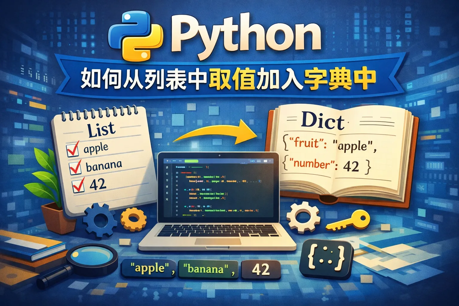 我有一个列表,想把列表中的元素作为字典的键或值添加进去,应该怎么操作?