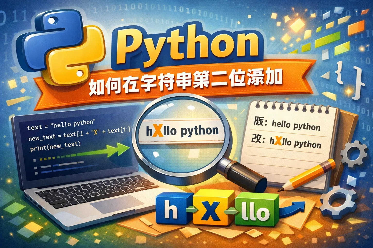 在Python中,字符串是不可变的类型,无法直接修改。可以利用字符串切片功能,将字符串分成两部分,然后插入新的字符或字符串,最后拼接成新的字符串。例如,要在字符串s的第二位插入字符c,可以写成:new_s = s[:1] + c + s[1:]。