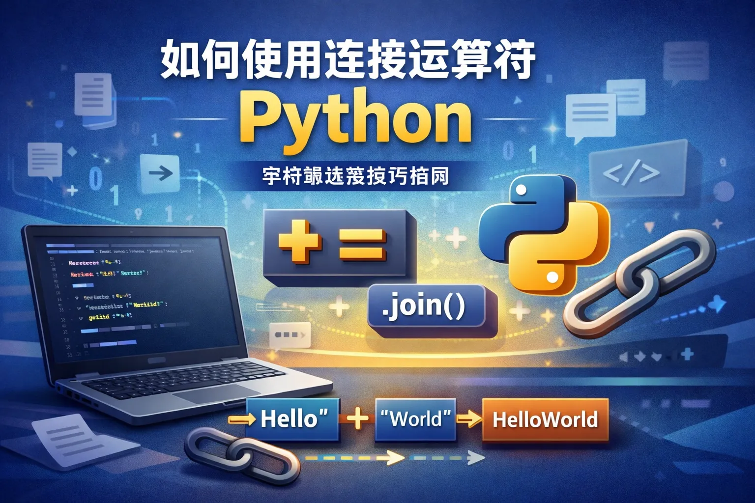 在Python中,使用加号(+)作为字符串连接运算符,可以将多个字符串拼接成一个新的字符串。例如,'Hello' + ' ' + 'World'会得到'Hello World'。此外,Python的字符串还支持join()方法,用于高效地连接字符串列表。