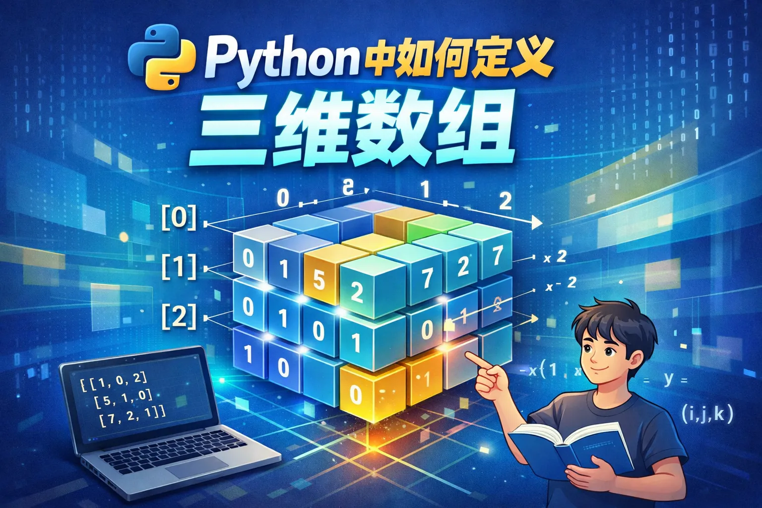 Python标准库本身并没有直接支持多维数组的数据结构,可以使用NumPy库来创建三维数组。使用numpy.array()可以定义一个三维数组,例如:import numpy as np; arr = np.array([[[1,2],[3,4]],[[5,6],[7,8]]])。这种数组可以方便地进行切片、运算和形状操作。