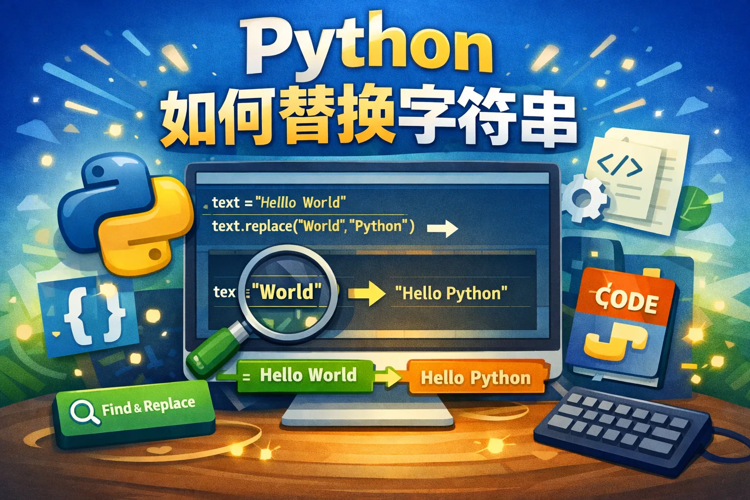 Python中最常用的替换字符串的方法是str.replace(),它可以替换字符串中指定的子字符串。除此之外,通过正则表达式模块re中的re.sub()方法,也能实现更复杂的替换需求,比如根据模式匹配替换内容。