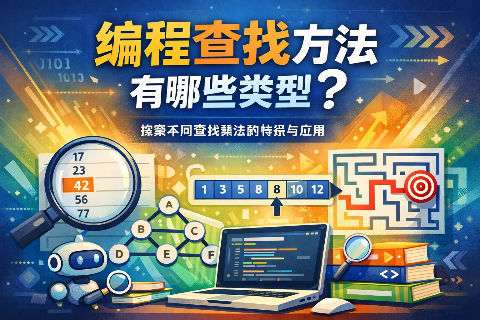 编程中的查找算法主要包括线性查找和二分查找两大类。线性查找适用于无序数据,逐个检查每个元素;二分查找则要求数据有序,通过不断折半缩小查找范围,效率更高。此外,还有哈希查找,利用哈希表实现快速定位以及插值查找等其他变种算法。
