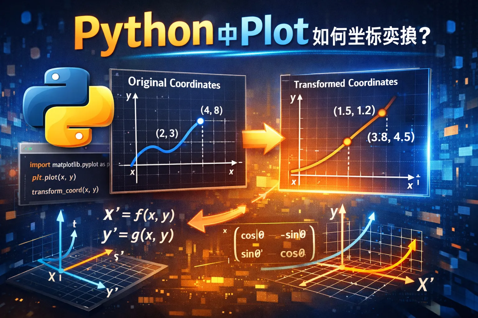 可以通过转换数据本身来实现坐标变换,比如对数据进行数学变换后再绘图。此外,在Matplotlib中使用transforms模块能够更灵活地对坐标轴做仿射变换、极坐标转换等。结合这些方法,可以实现多样化的坐标系统和视觉效果。
