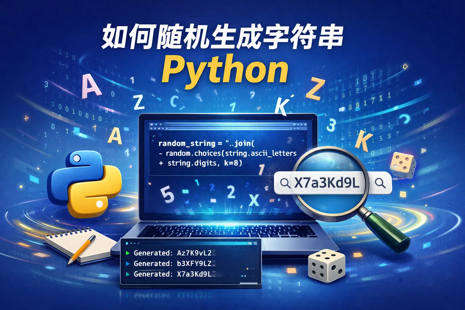 在Python中,可以使用random模块和string模块结合生成随机字符串。比如,导入string.ascii_letters来获取所有字母,再通过random.choice从中随机选择字符,循环拼接即可得到指定长度的字符串。