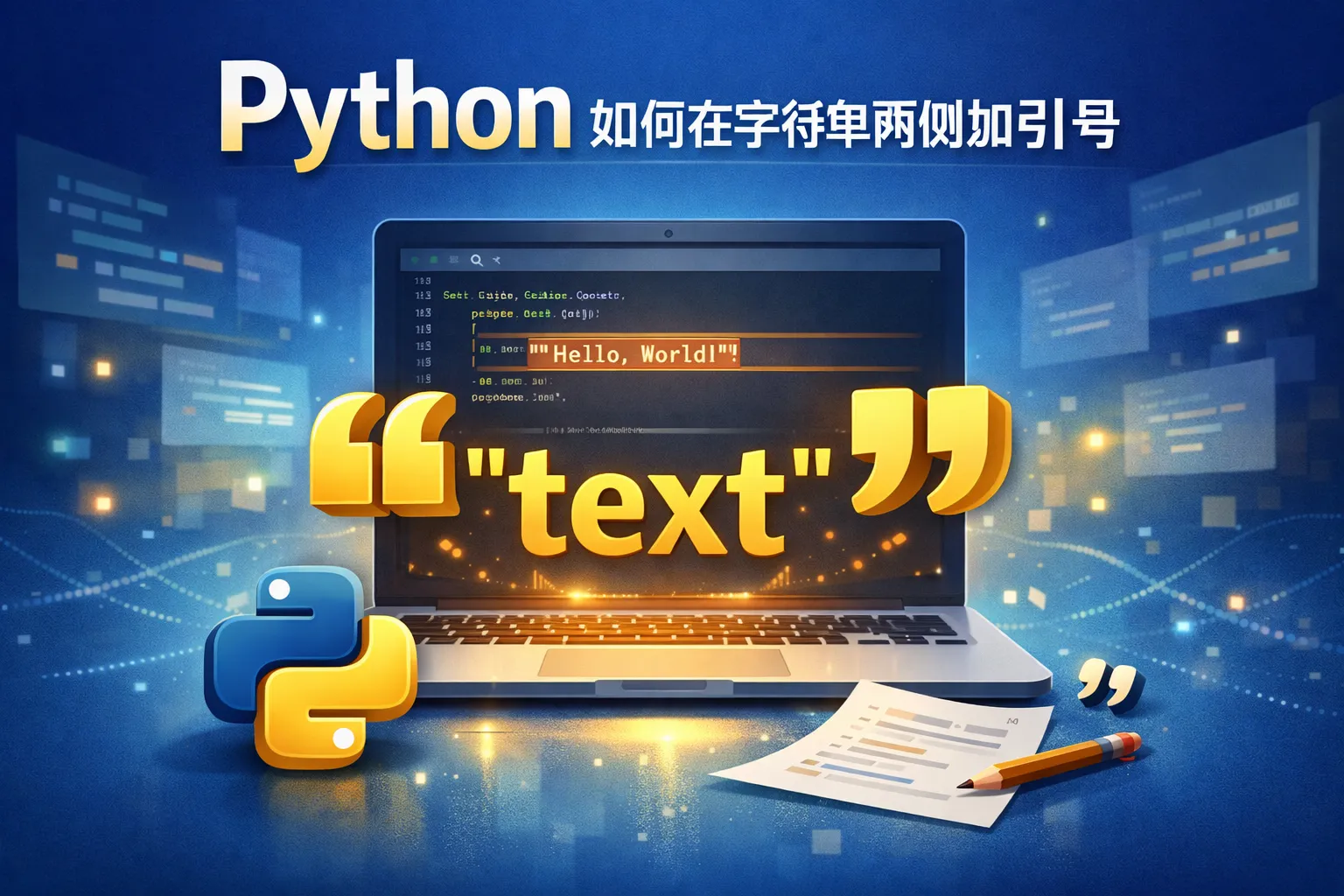 可以通过字符串拼接的方式,在字符串前后加上引号,如使用单引号或双引号拼接字符串。此外,也可以使用格式化字符串(f-string)、format方法或百分号格式化实现。比如,使用 f'"{string}"' 来在字符串两侧加上双引号。