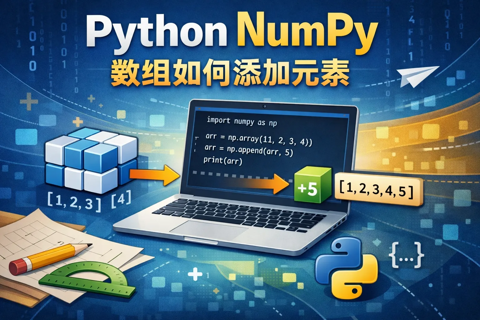 对于多维数组,可以使用numpy.concatenate沿指定轴拼接数组,或者使用vstack(垂直堆叠)添加行,hstack(水平堆叠)添加列。举例来说,添加一行可以用numpy.vstack([原数组, 新行]),添加一列可以用numpy.hstack([原数组, 新列]),新行或新列需要和原数组维度匹配。