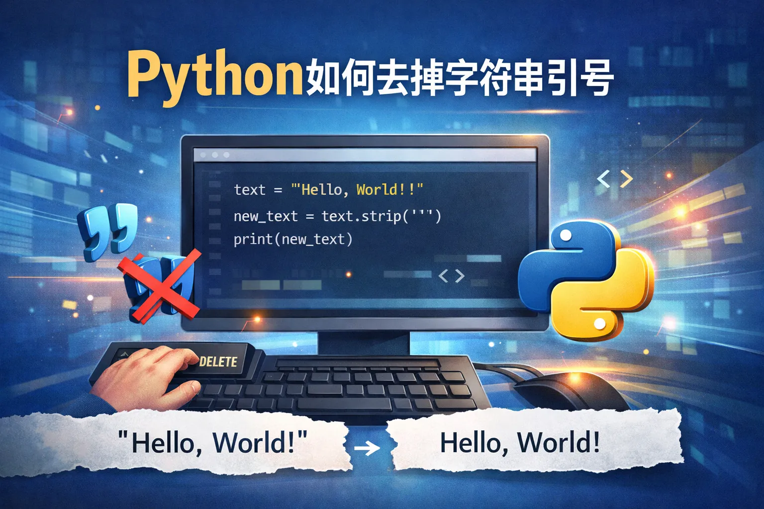 使用strip()方法去除首尾引号