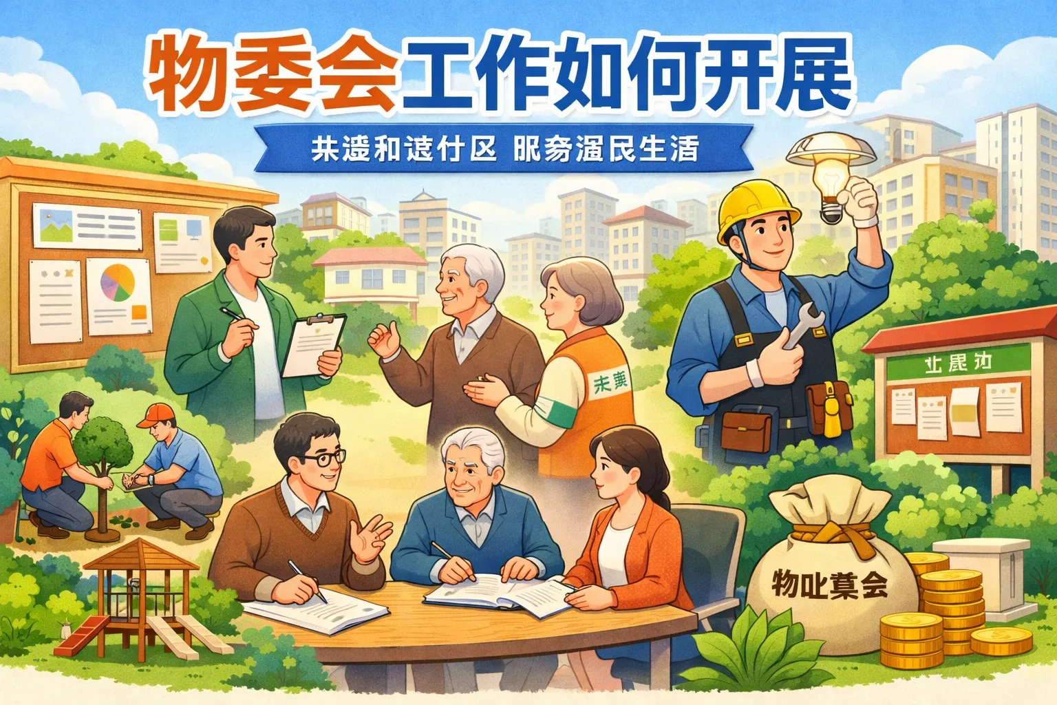 物委会主要负责物业管理相关事务的监督与协调,包括业主与物业公司的沟通、物业服务质量的监督、公共设施维护、费用管理及纠纷调解等。通过这些工作,物委会保障业主的合法权益,提升小区管理水平。