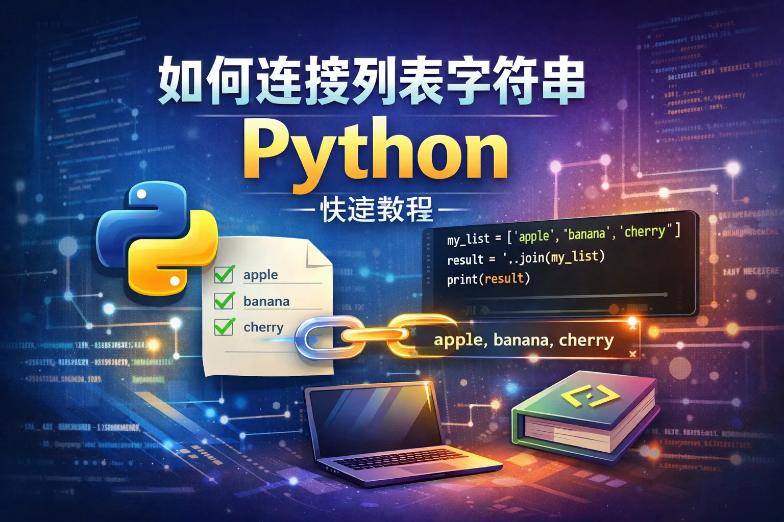 join()要求所有列表元素都必须是字符串类型。如果列表包含非字符串元素,可以使用列表推导式先将它们转换成字符串,如[str(item) for item in list],再用join()方法连接。这样就不会导致类型错误。