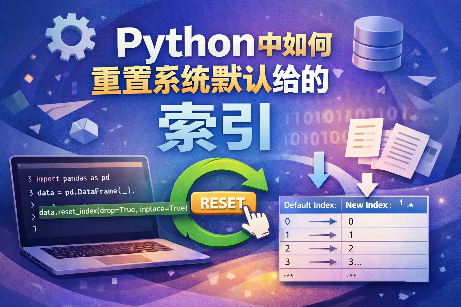 reset_index()函数默认会将原索引转换为DataFrame中的一列。如果不想保留这列,需传入参数drop=True,这样旧索引直接被删除,DataFrame只包含默认整数索引而不会添加索引列。