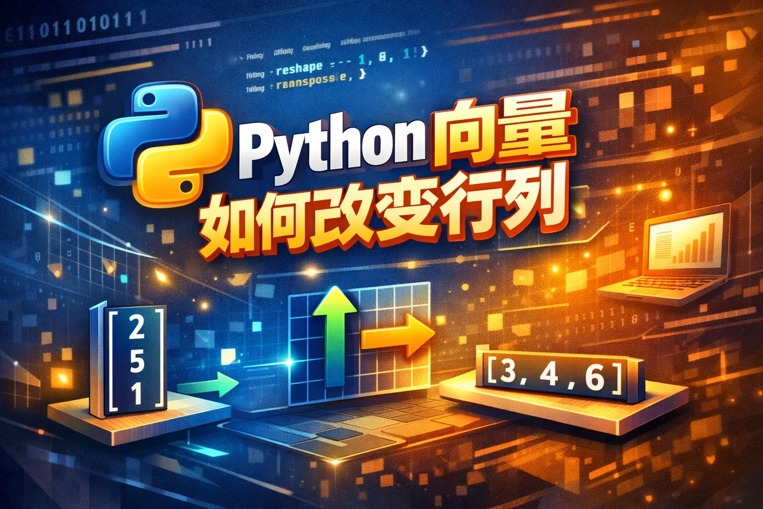 如果向量是NumPy数组,可以用transpose()或.T属性将行向量转为列向量;另外,reshape(-1,1)也能达到相同效果。