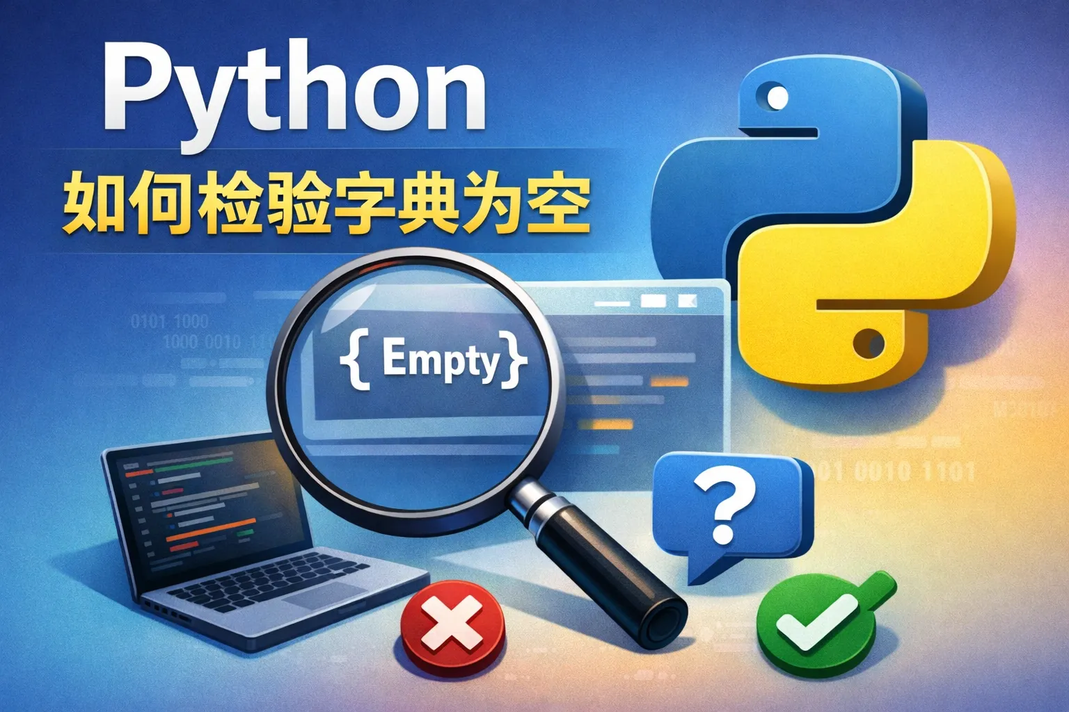 Python中字典如果为空,其布尔值为False;如果非空,则为True。因此可以通过if not my_dict:或者if my_dict:来分别判断字典为空或非空。这种方式简洁且高效,被广泛使用。