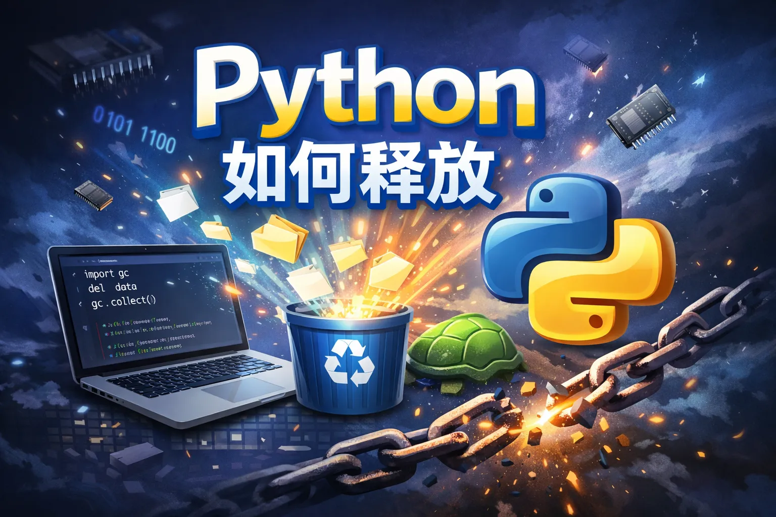 Python使用垃圾回收机制自动管理内存,通常不需要手动释放内存。但在处理大型数据或对象时,可以通过删除不需要的变量(使用del语句)帮助及时释放引用,另外,调用gc模块的collect()方法可强制进行垃圾回收。合理管理变量作用域也有助于内存回收。