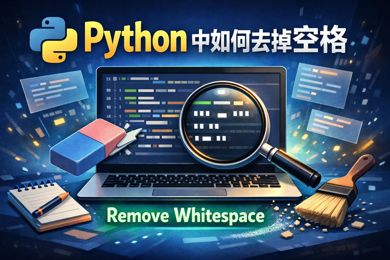 Python 的字符串类型提供了 strip() 方法,可以用来去除字符串开头和结尾的所有空白字符,包括空格、制表符和换行符。例子:str.strip()