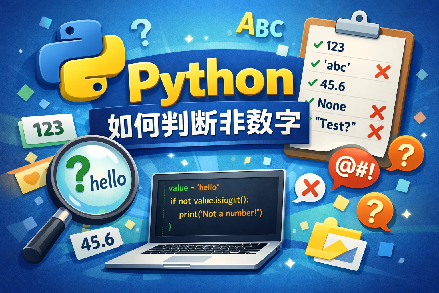 在Python中,可以使用isinstance(var, (int, float))来判断变量是否是数字类型。如果返回False,则说明该变量不是数字。此外,还能结合异常处理尝试转换为数字,若失败则说明不是数字。