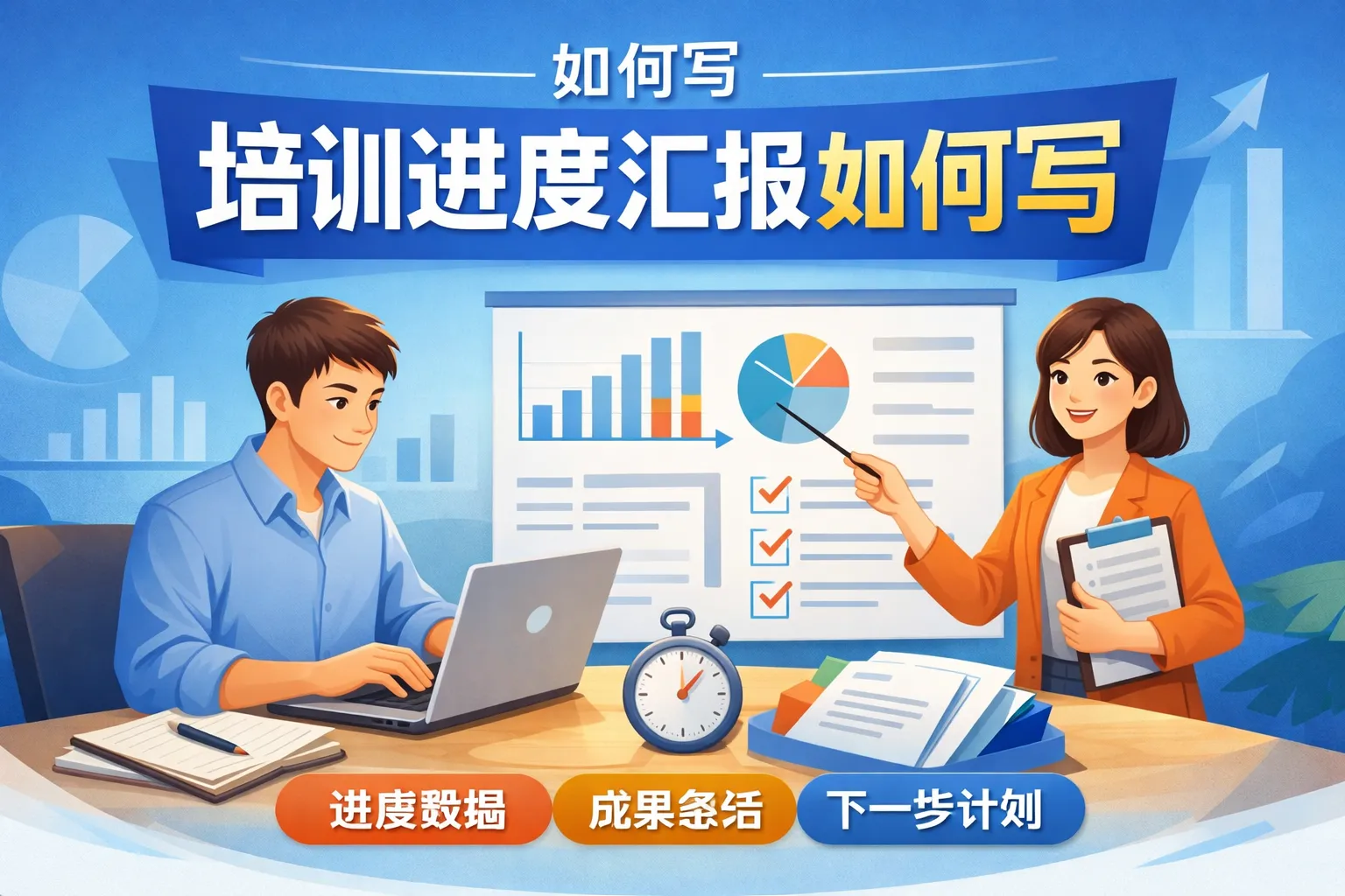 为了让汇报更具参考价值,哪些内容是撰写培训进度报告时必须涵盖的?