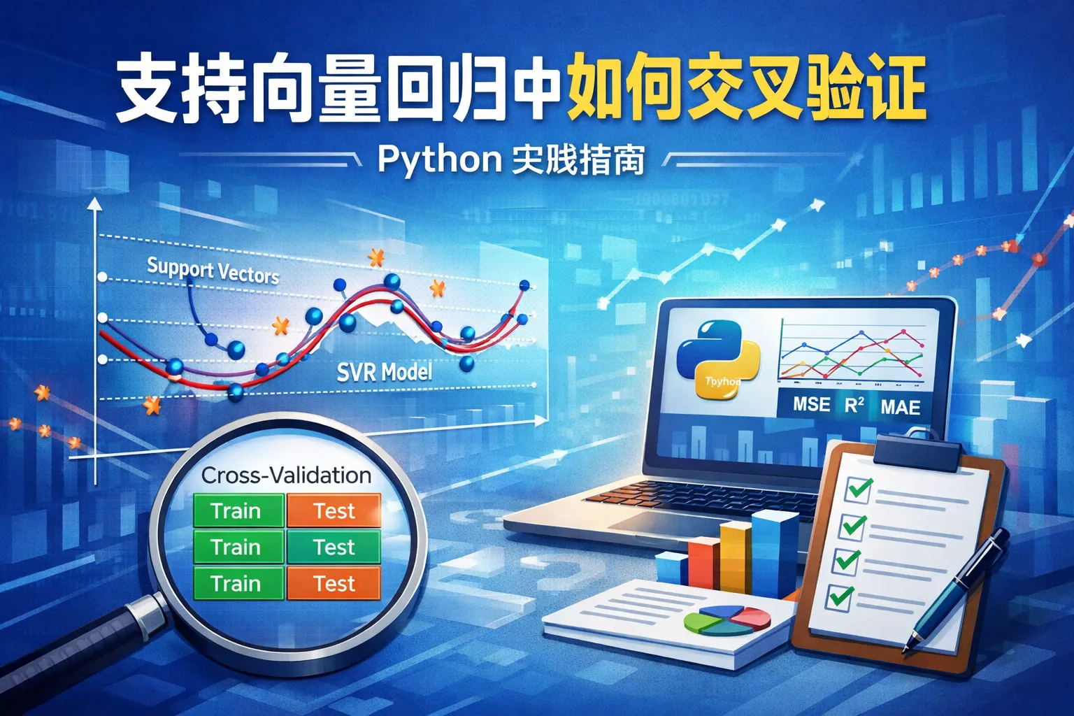 交叉验证时应选择合适的折数(如5或10折),平衡训练和验证时间。对于SVR模型,核函数(如线性核、多项式核、径向基核)和正则化参数C等超参数会显著影响预测效果,通常会配合交叉验证进行参数调优。