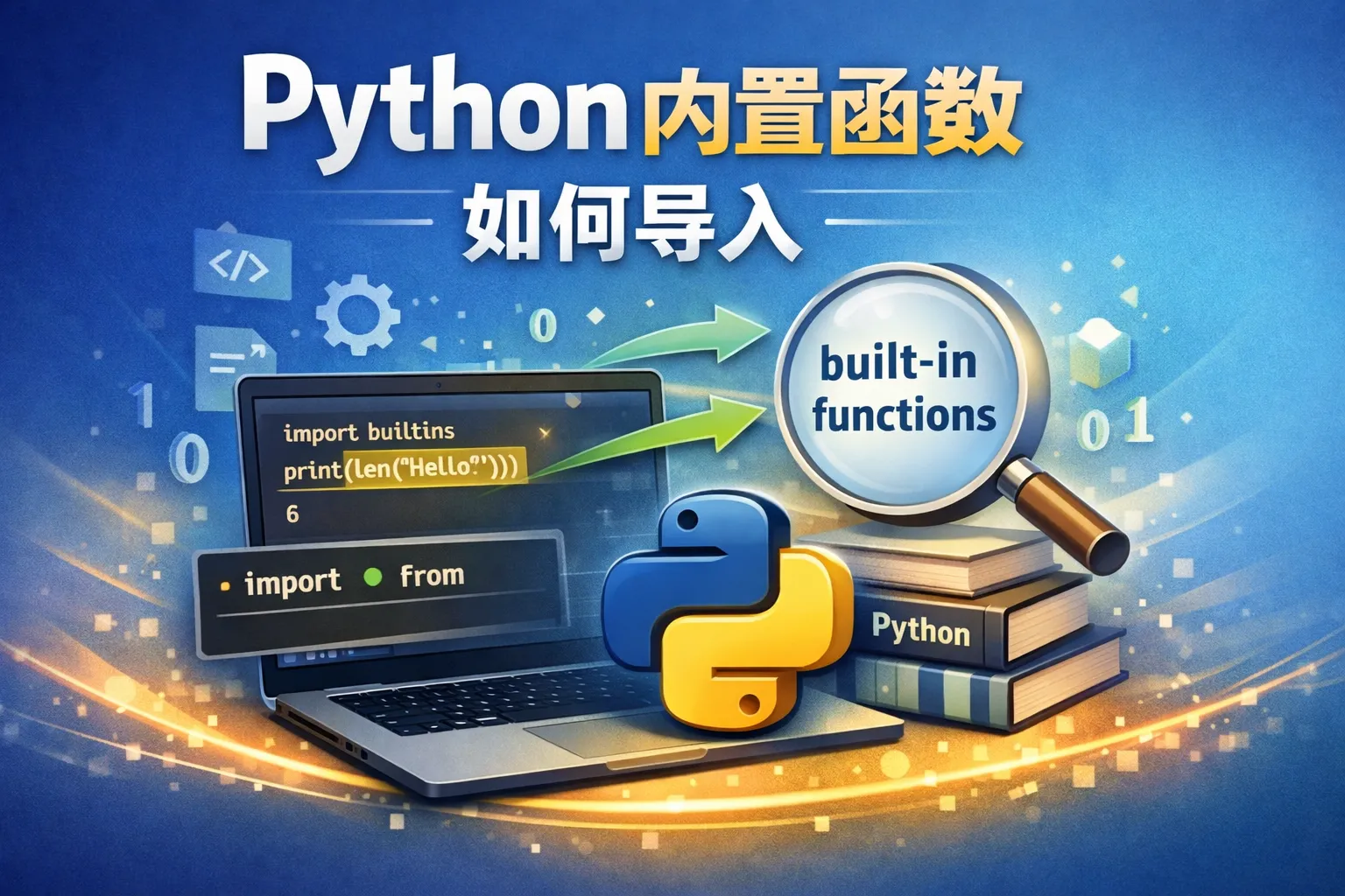 Python的内置函数是随语言环境自动提供的,不需要通过import语句导入,可以直接在代码中调用。例如,print()、len()等函数可以直接使用,无需额外导入。