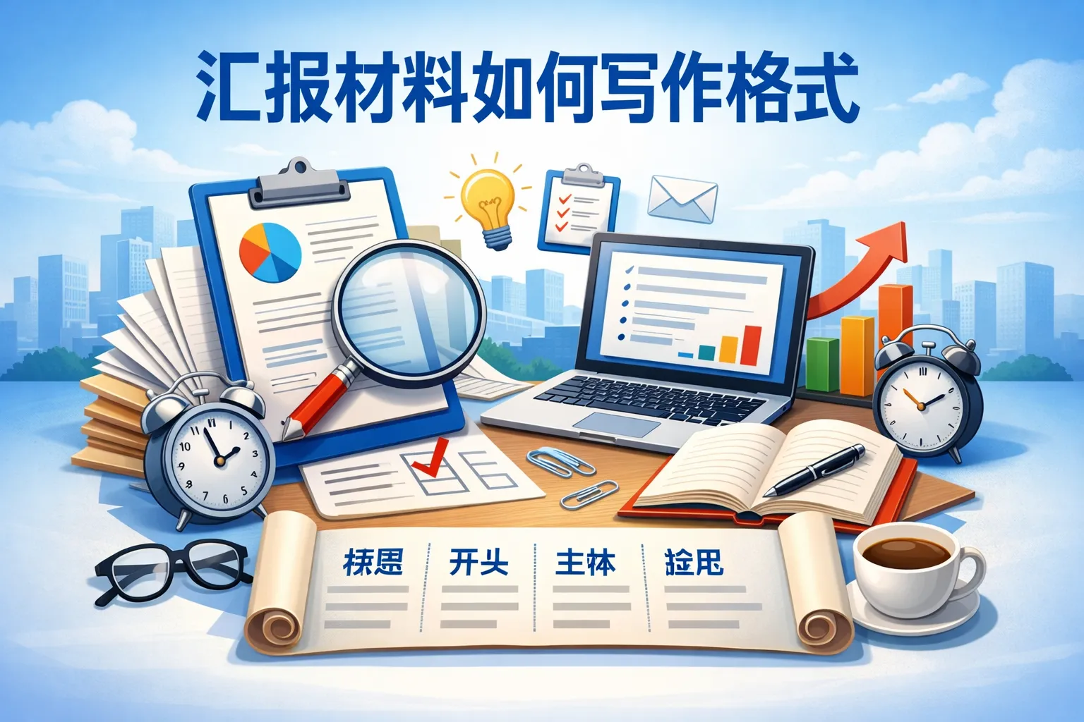 汇报材料通常包括标题、前言、主体内容和结论四个部分。标题应简洁明了,前言部分说明汇报的背景和目的,主体详细陈述工作内容、问题及解决方案,结论部分总结主要成果或提出后续建议。这样安排能让读者快速把握核心信息。